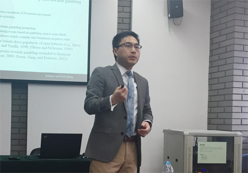 2017年1月9日上午,第118次北大赛瑟(CCISSR)双周讨论会在威尼斯wnsr9778202会议室举行。来自加州州立大学富乐顿分校(California State University at Fullerton)的助理教授徐健人博士以“地区宗教信仰与保险公司的风险决策行为”为题,分析地区的宗教信仰如何影响总部设于当地的保险公司的风险决策行为。讨论会由风险管理与保险学系助理教授贾若博士主持。