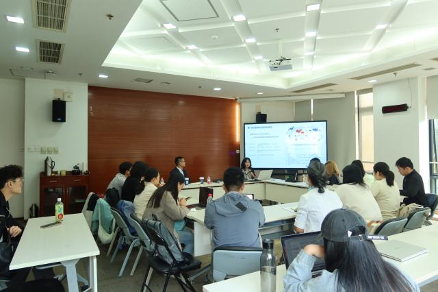 在问答互动环节,俞海燕进一步就学生关心的实际问题展开交流。何昳矾同学就在海外工作如何着装更得体提出自己的疑问,俞海燕谈道,在外交和商务场合,适应当地的着装礼仪有助于拉近彼此距离,是一种跨文化尊重的体现,在驻在国融入当地文化有助于企业内部管理和ESG发展。易阳天同学提出,随着中国产业结构升级,中韩产业是否面临由合作到竞争的问题,俞海燕表示,中韩经贸关系已从“垂直互补”向“竞争合作"融合并存。她认为,产业结构转换变化和中国企业竞争力的提升是不可回避的现实,但双方在新材料、新能源、人工智能、绿色经济及第三方市场等新赛道上仍有广阔合作空间,期待随着APEC会议交流、中韩推进FTA第二阶段谈判以及未来“十五五规划”的落实,中韩企业凝聚智慧,挖掘共同关心的领域,运用中国大市场和应用场景,实现互利合作共同发展。针对曹凌一同学提出在出海浪潮下,未来职业发展问题,俞海燕建议学子们尽早明确兴趣方向,多参与实习、调研、企业参访等活动,如实地参观中国贸促会举办的“中国国际供应链促进博览会”,感受国家发展脉搏,积累实战体验并全面了解自我,为适应社会环境作准备。她鼓励大家培养“主动、勤奋、细致”的职业素养,增强对国际市场的敏感度与适应力。俞海燕指出,未来从事对外经贸合作,无论是在企业、国际组织还是政府机构工作,具备应对困难的心理素质和勇气、优秀的外语等多种服务技能、积极聚拢团队的情商和协调能力的人才将更具竞争力。