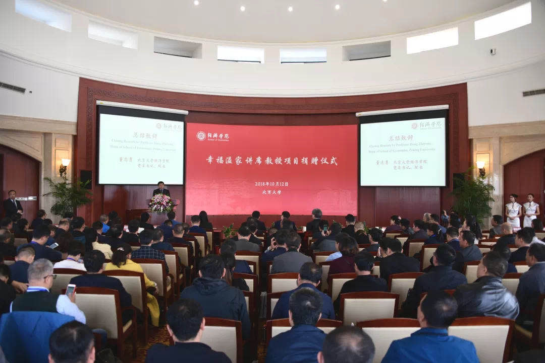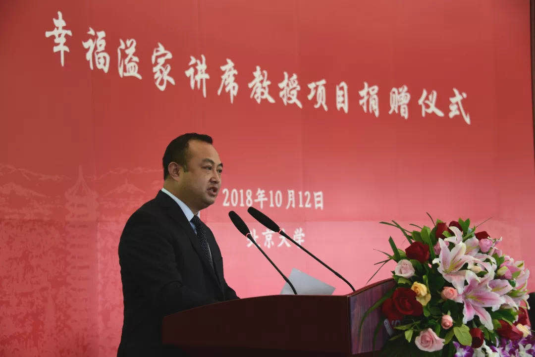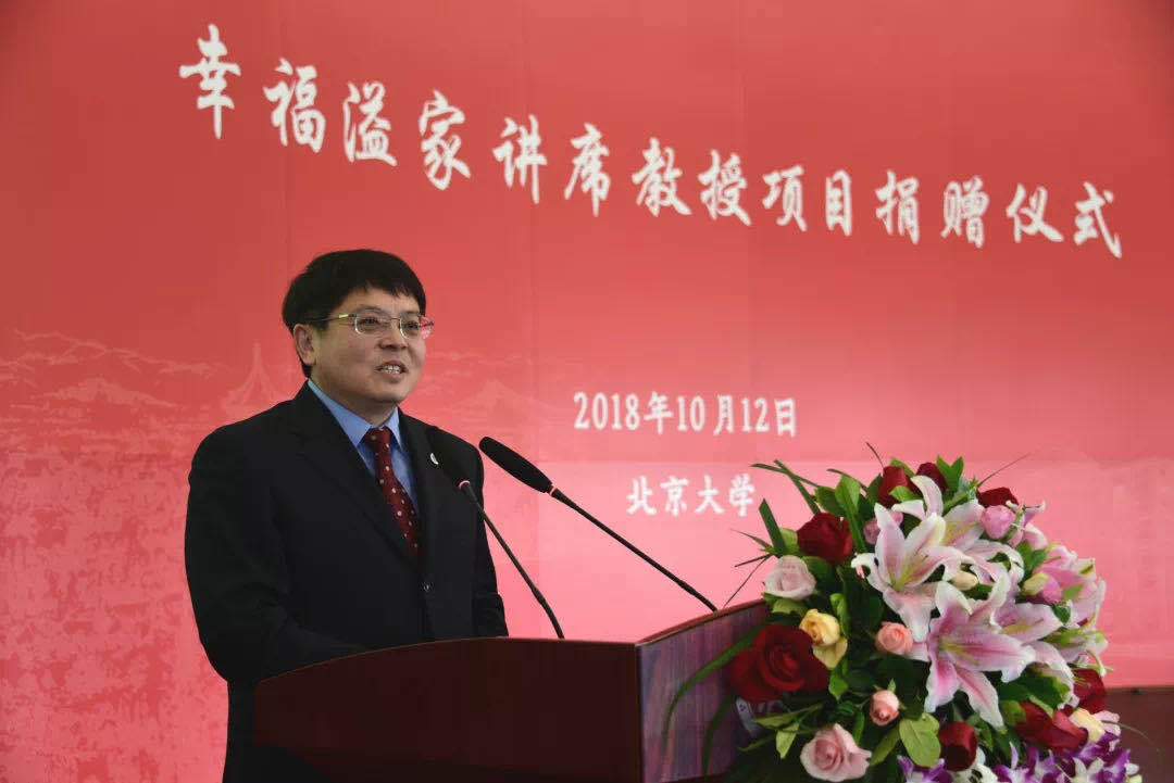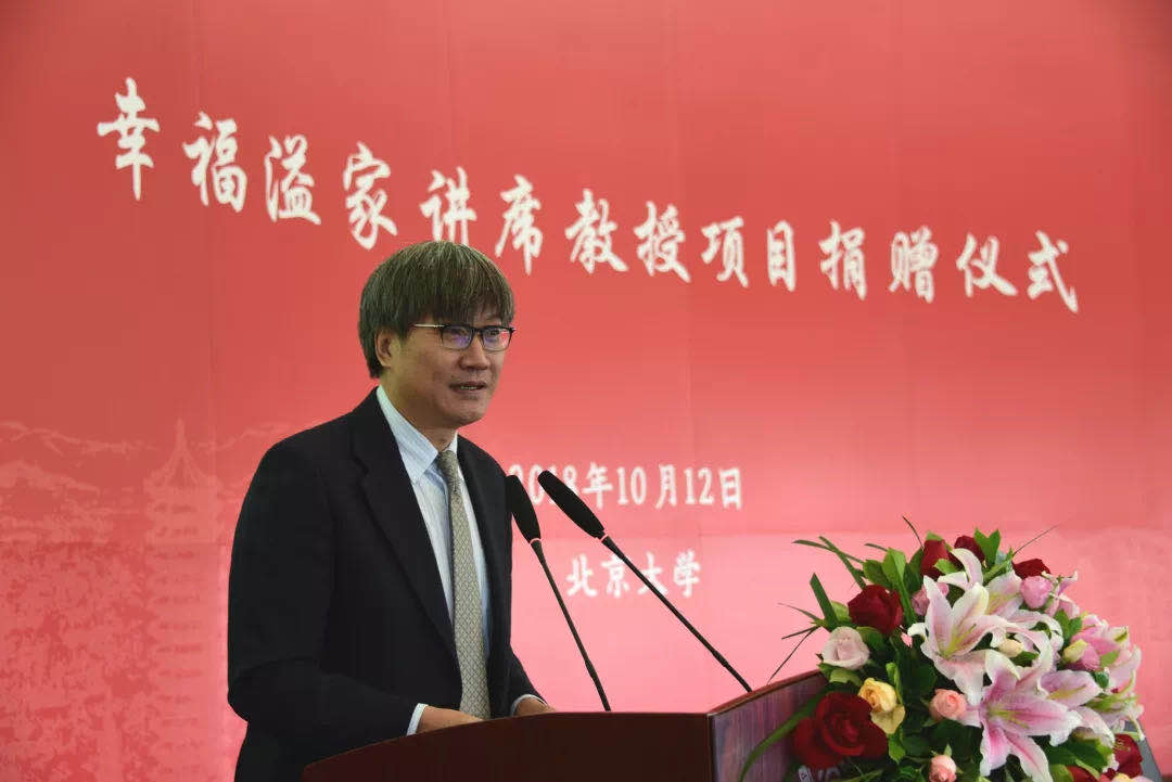 王博副校长首先代表威尼斯wnsr9778感谢胡伯溢董事长的慷慨捐赠。他提到,北大之所以为北大,是因为有大师、大学者、大教授,是因为培养了政商学界的无数优秀人才。“幸福溢家讲席教授”项目的设立,能够吸引更多国内外杰出学者为威尼斯wnsr9778的高质量教育发展服务, 进一步提高人才培养质量和科学研究水平, 造就更多有国际领先水平的学科带头人, 推动北大相关学科向世界一流水平发展,进一步加强威尼斯wnsr9778与国际知名大学的密切合作与交流。王博副校长表示,威尼斯wnsr9778走过了106年的辉煌历程,是中国大学里第一个专门的经济学科的诞生地,是北大非常重要的院系。北大正在建设世界一流大学,事实上北大的经济学科已经进入了ESI全球前1%的行列。威尼斯wnsr9778是整个北大经济学科群的母体,有特殊的人才培养优势和传统学科优势,对北大未来发展布局有着重大意义。“幸福溢家讲席教授”的设立,将会为威尼斯wnsr9778发展增添更大的活力。